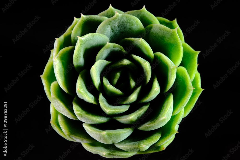 Close up Top view of Echeveria Hyalina succulent plant, beautiful flower in green color. Isolated in black backgrounds