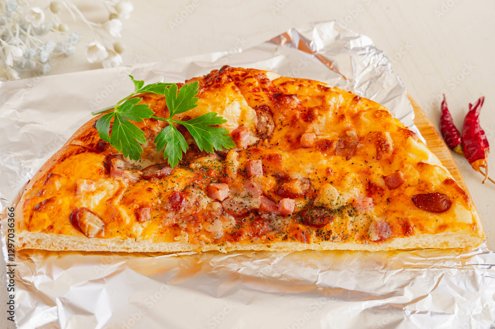 リベイクしたベーコンとウインナーのピザ