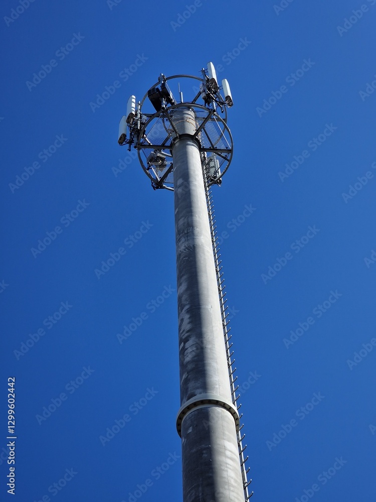 Wieża Komunikacyjna z Antenami na Tle Błękitnego Nieba