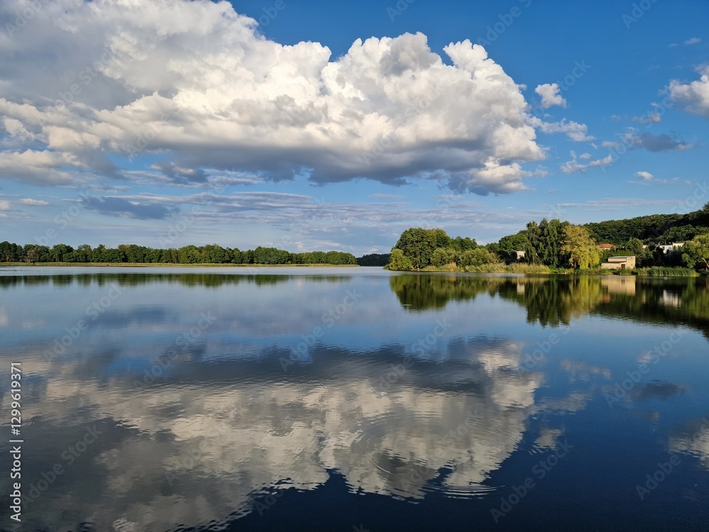 Spokojny Krajobraz z Jeziorem i Odbiciem Nieba