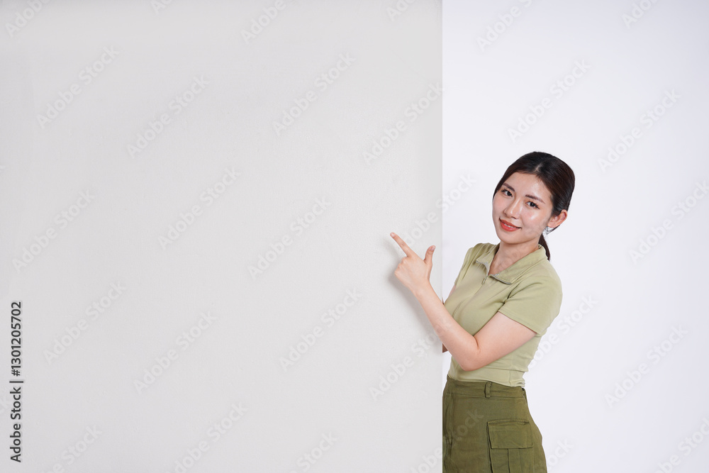 image of Asian girl standing and posing with billboard
