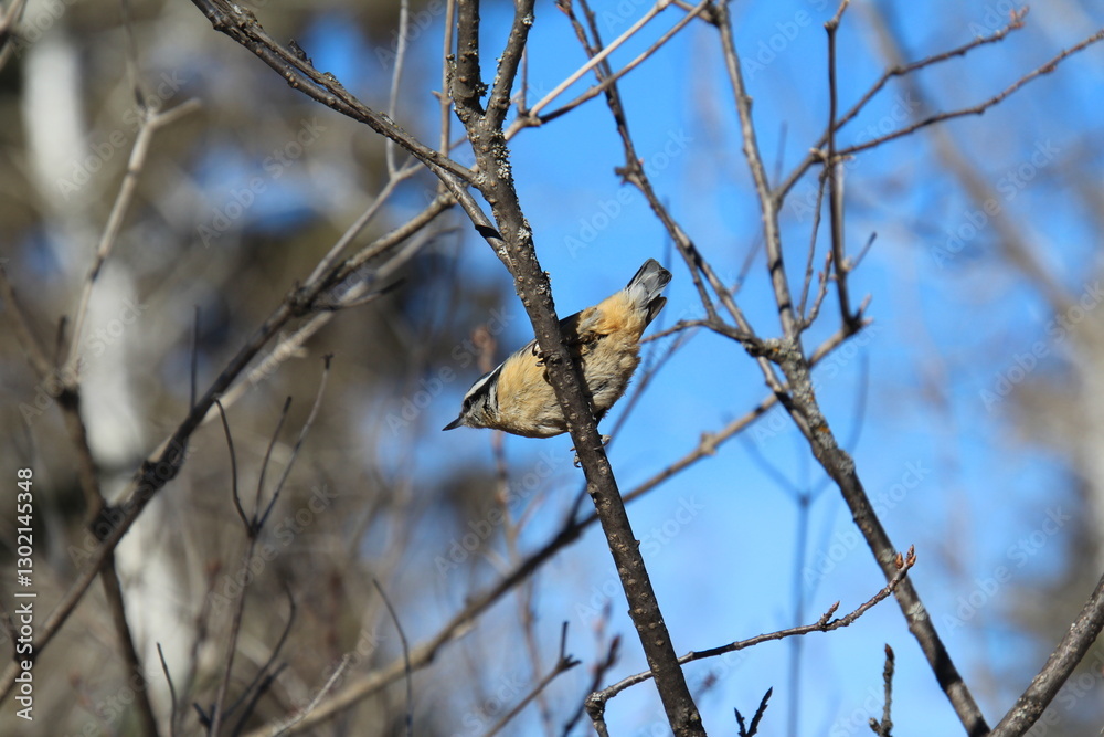 Red Breasted Nuthatch On A Branch, Whitemud Park, Edmonton, Alberta