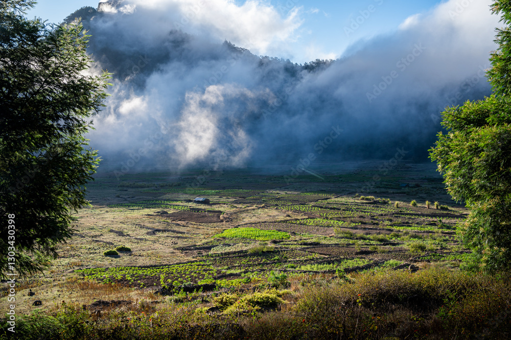 Vantage viewpoint over the Paul crater and its field of cultures, Santo Antao island, Cape Verde