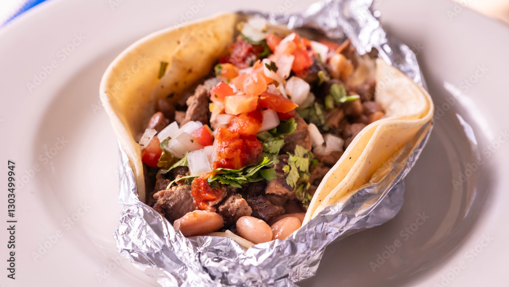Mexican street steak taco close up