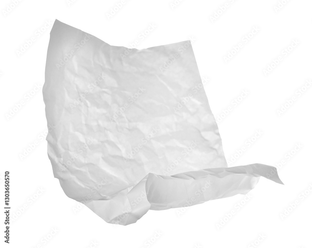 White crumpled paper flying, sheet falls and twists isolated on white, clipping path