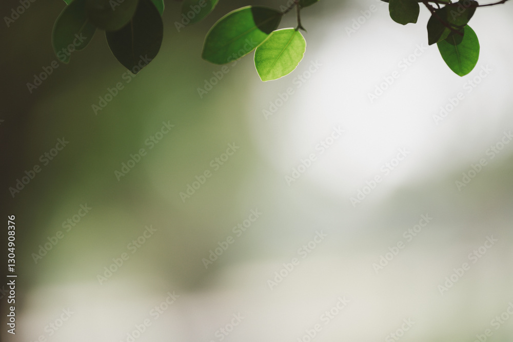 Closeup beautiful view of nature green leaf on greenery blurred background with sunlight and copy space. It is use for natural ecology summer background and fresh wallpaper concept.