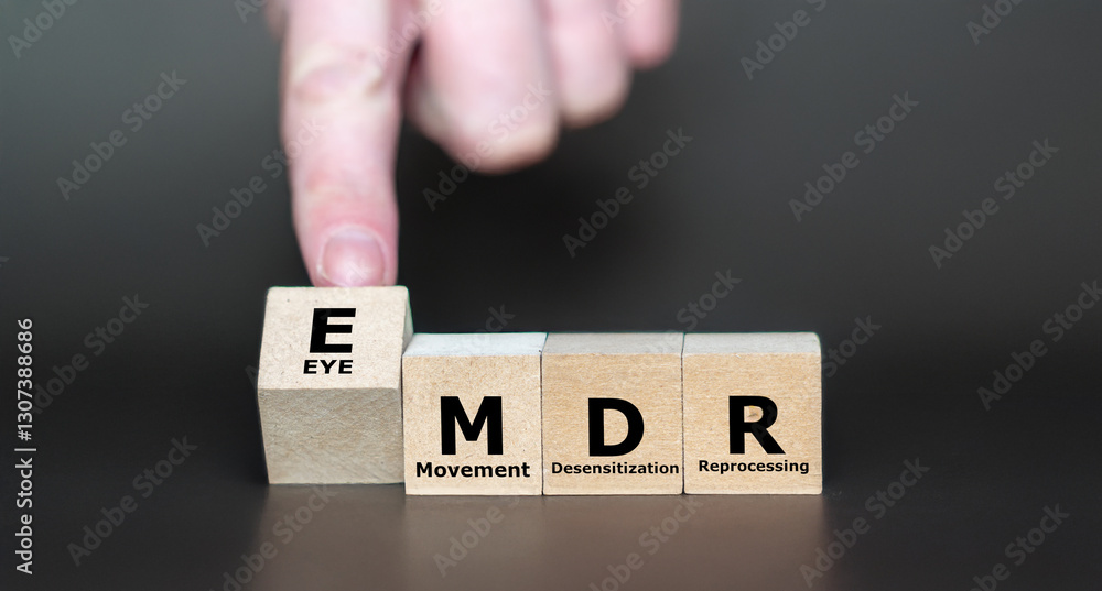 Cubes form the Expression EMDR, which stands for Eye Movement Desensitization and Reprocessing. EMDR is a psychotherapy treatment that is designed to alleviate the distress with traumatic memories.
