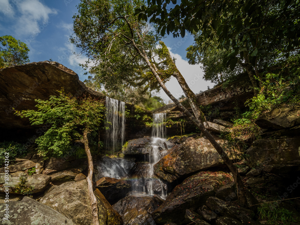 Photography long exposure landscape view amazing waterfall beautiful in nature in tropical hiking green forest wild of national park Thailand look freshness cool spring season on vacation travel