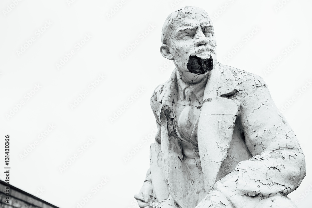 Damaged Lenin statue, peeling vintage paint. The concept of syst