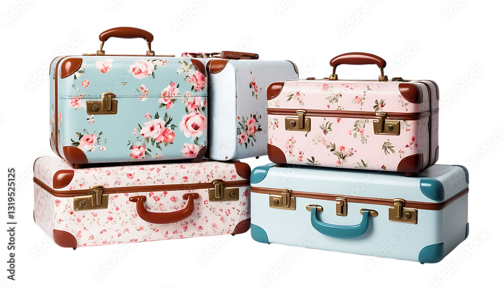 Chic and girly suitcases with floral patterns png