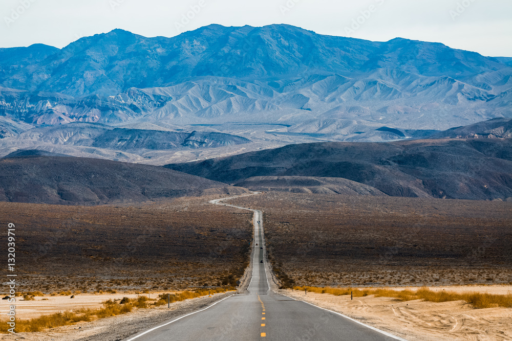 Road in the Death Valley National Park with mountains on the horizon. USA