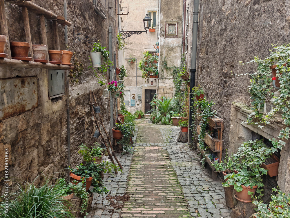 Narrow street in the old town of Anagni in Lazio region, Italy