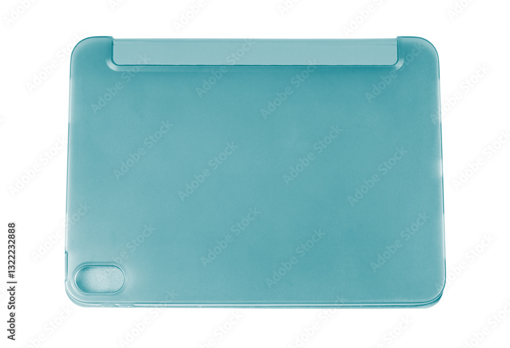 light blue origami tablet case is isolated on transparent background, providing protection for devices while enhancing the aesthetics,rear view,