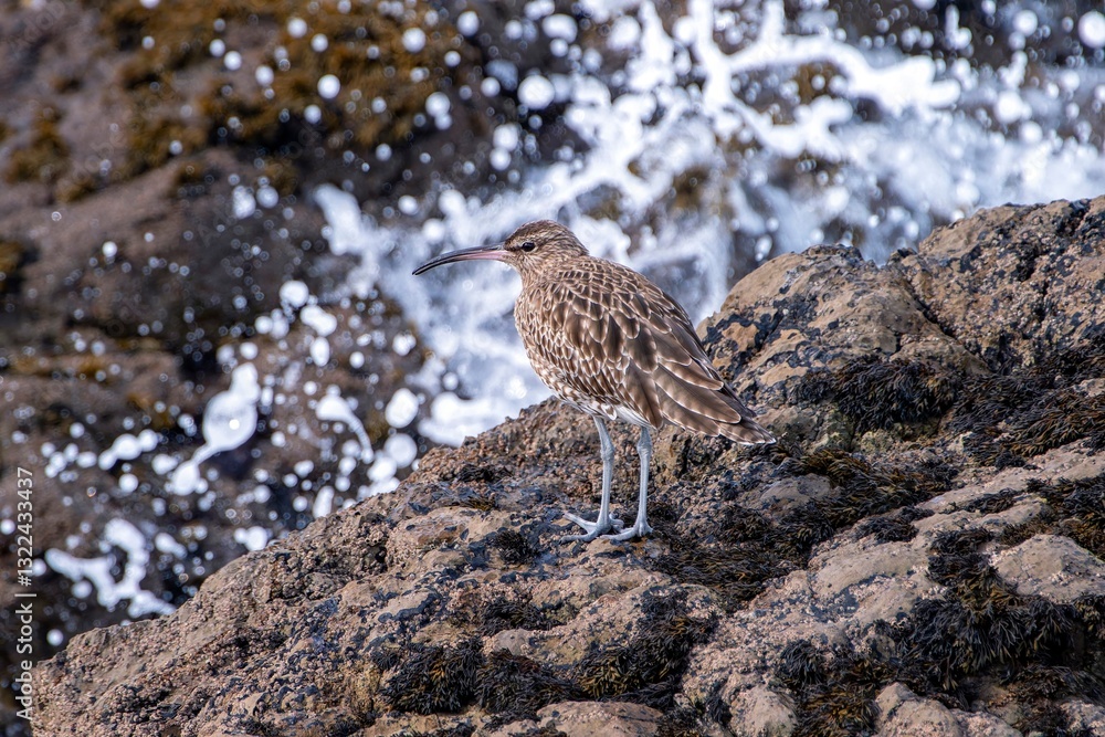 Whimbrel among the rocks on the coast.
