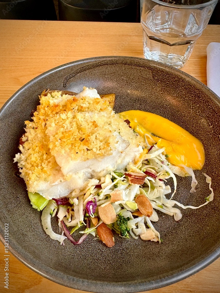 Gourmet seafood dinner plating