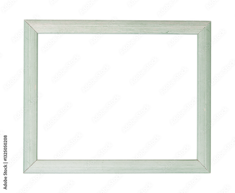 Weathered vintage light green wooden frame with striped texture placed on clean transparent background with plenty of free space for creative design