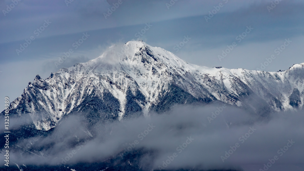 野辺山から冬の清里高原越しの冬の南八ヶ岳の絶景 赤岳 長野県南牧村 日本