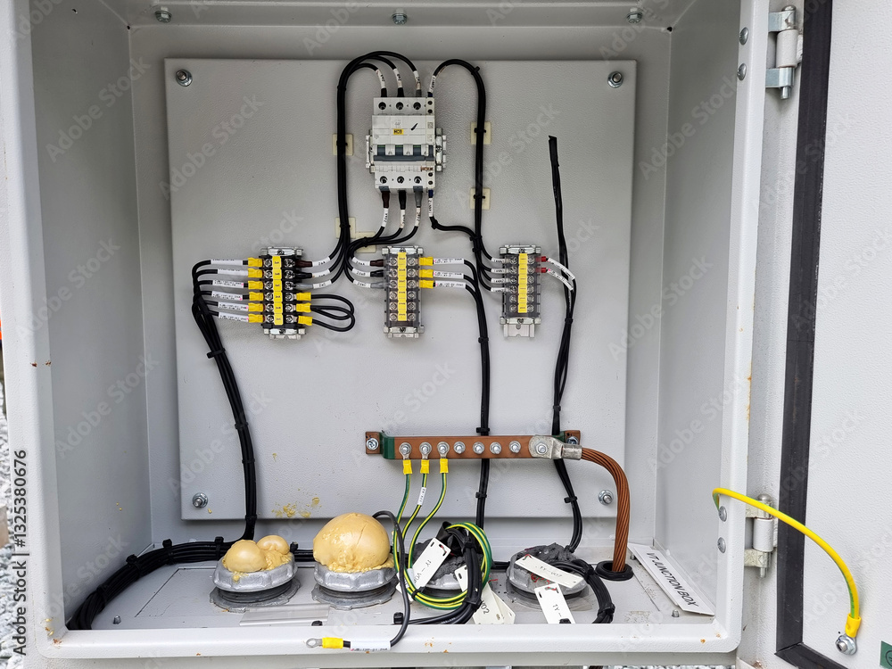 The secondary cable of 115kV Potential transformer and and grounding wiring installed in PT junction box at switchyard area.