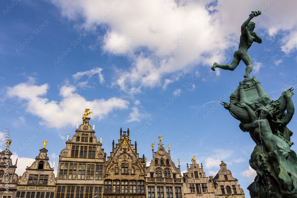 The guildhalls Sint-Joris at Grote Markt and the Brabo fountain