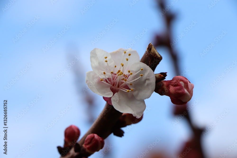 apricot blossom bud and flowers