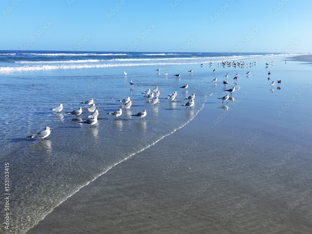 A flock of seagulls and terns at the beach, Jacksonville Beach, Florida, USA.