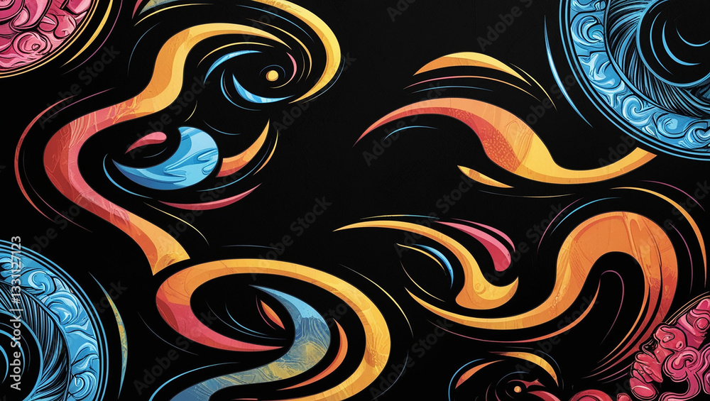 Abstract Colorful Lines 3d Illustration Contrast Color With Black Background, with full red gradient color, simple elegant, simple background