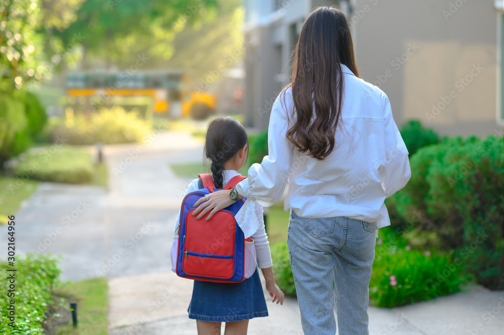 Small tree in a pot wrapped in burlap on woman hands against garden background.