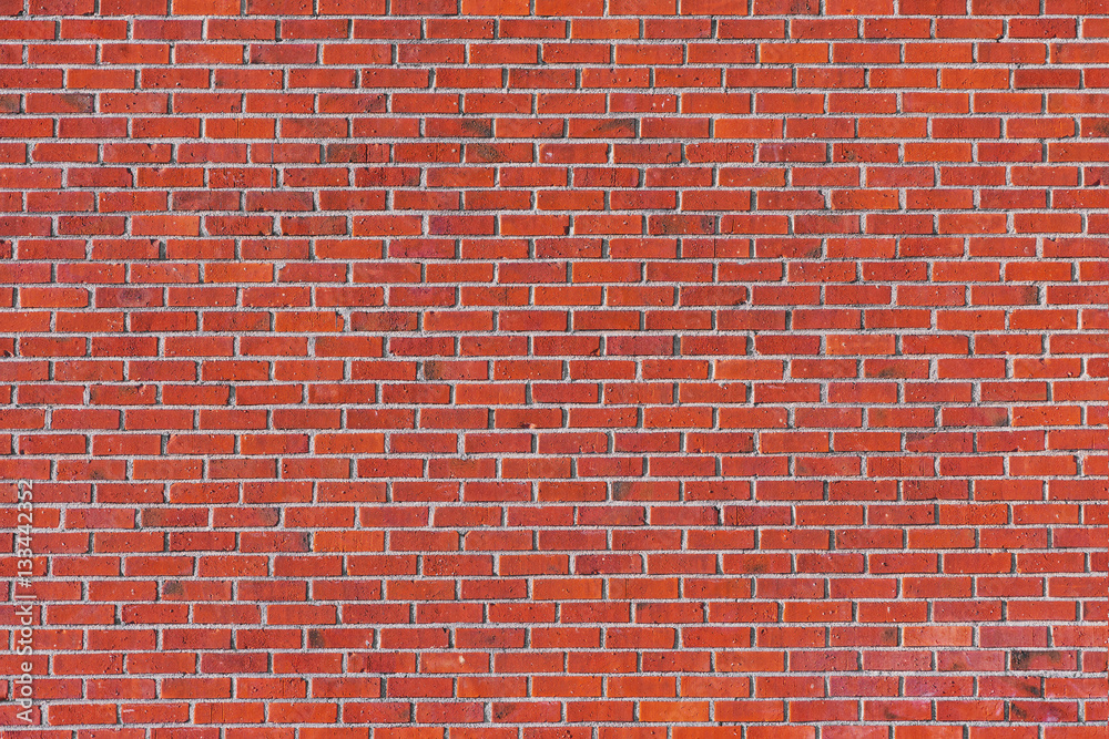 Red brick wall with many tiles on a building facade