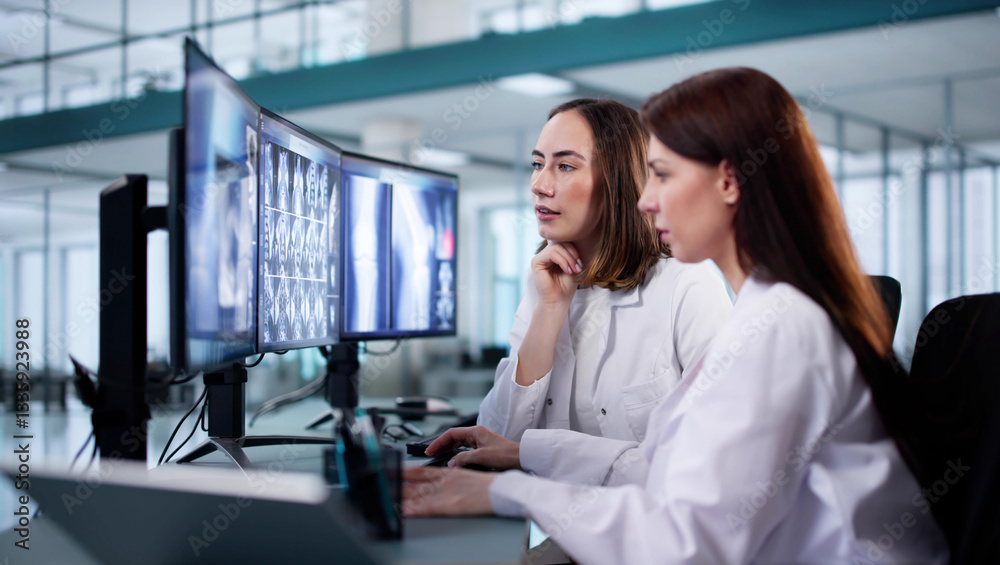 Female Dentist Examining Xray Images of Patient's Teeth