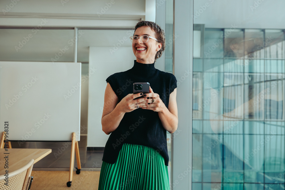 Confident non-binary entrepreneur in a modern office setting, exemplifying startup success and innovation