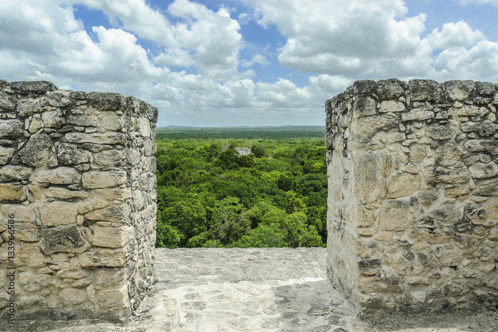 sight of the thickness, of the treetops and of other pyramids in the reservation of the biosphere, national park and archaeological place of Calakmul, Quintana Roo, Mexico