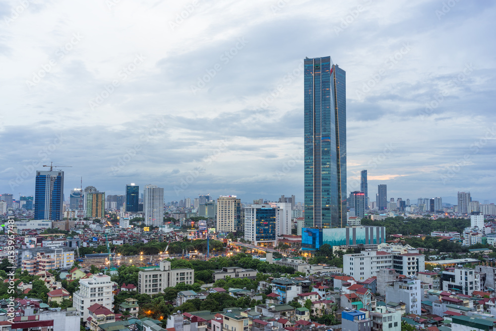 Aerial view of Hanoi cityscape at Lieu Giai street - Dao Tan street - Kim Ma street, Ba Dinh district. Hanoi skyline at twilight