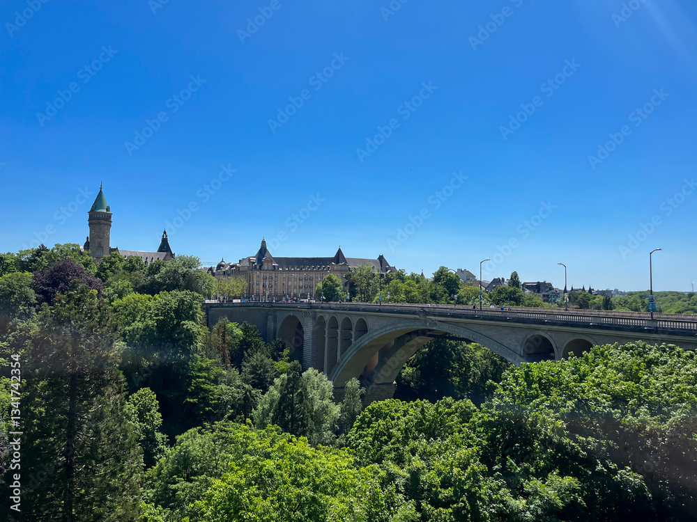 Point Adolphe seen on a sunny summer's day under blue sky. Luxembourg. 2023-05-31