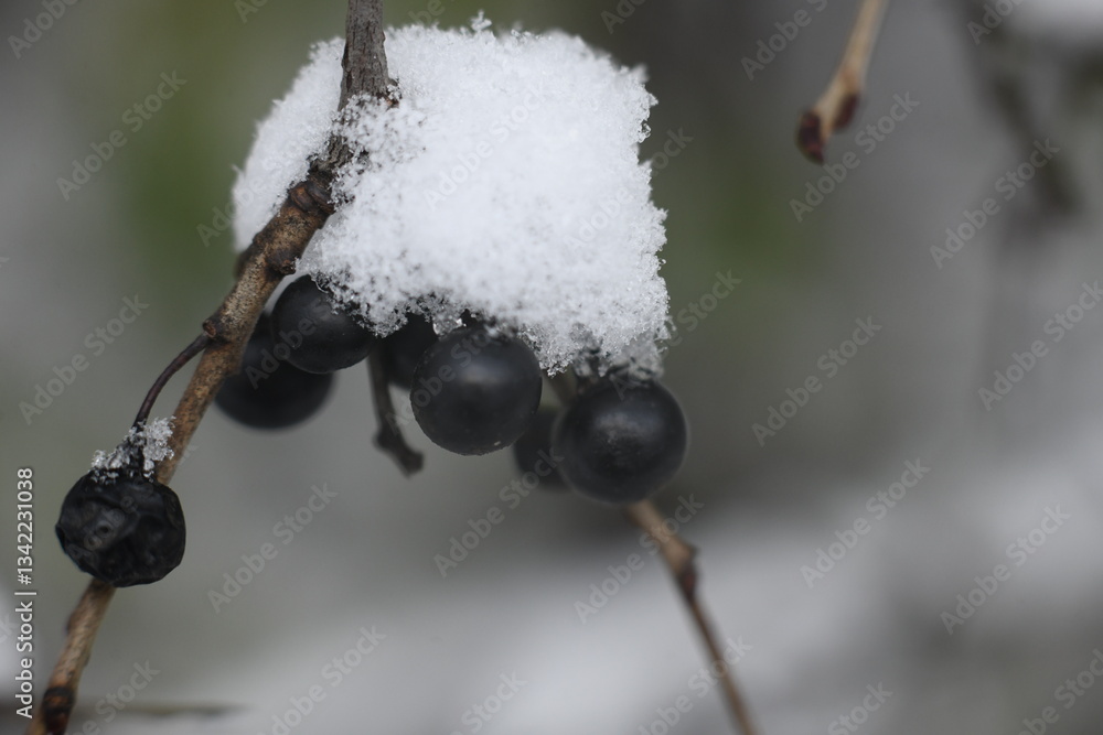 Viburnum lantana berries in winter