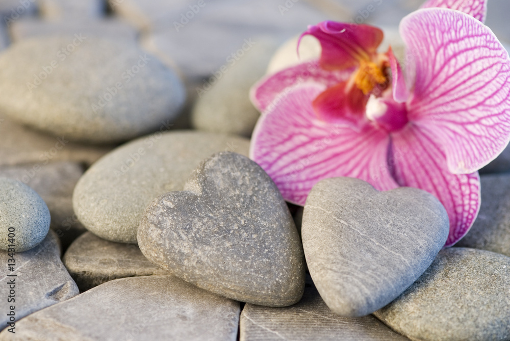 Orchidee und Steinherzen