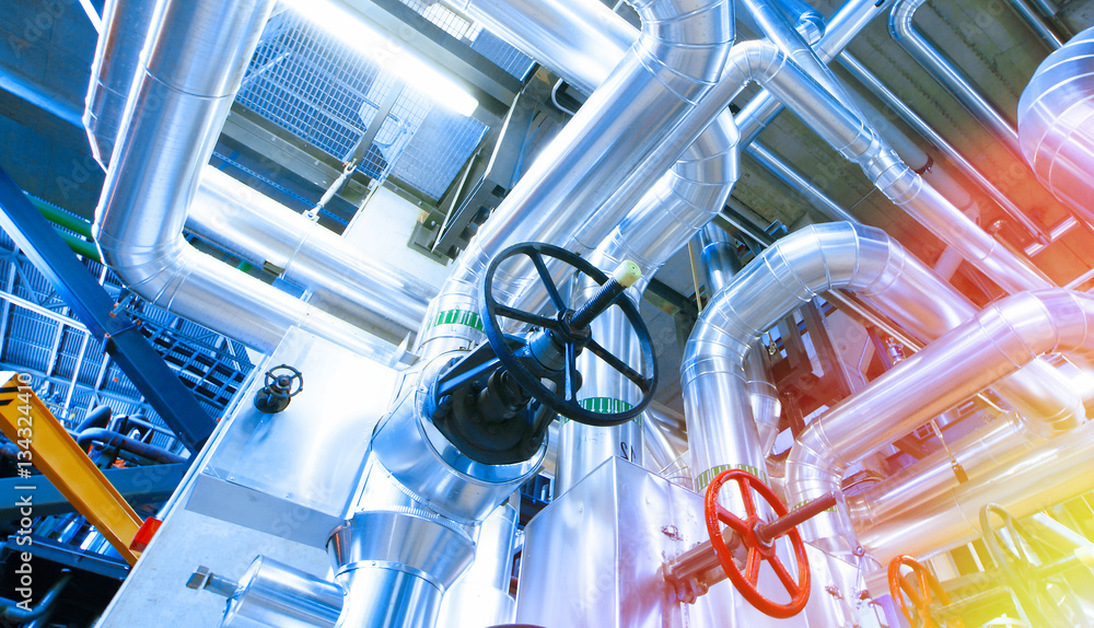Industrial zone, Steel pipelines, valves and cables