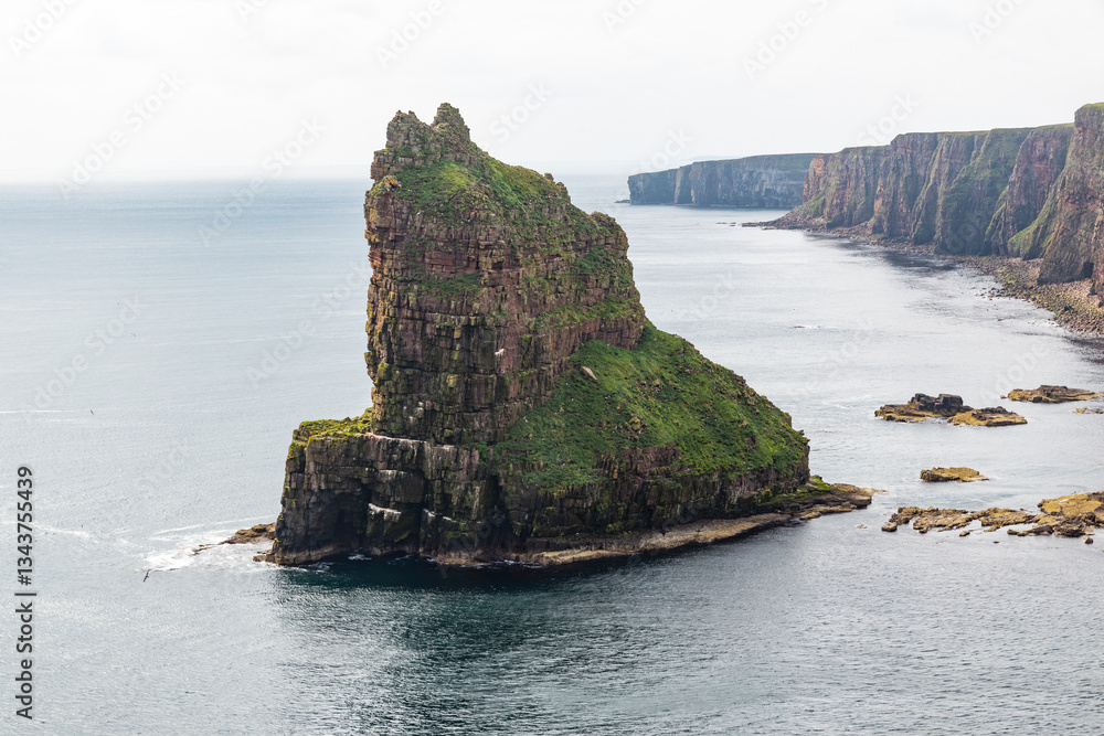 Duncansby Stacks, a breathtaking coastal wonder in Scotland, rise dramatically from the North Sea. Standing atop the towering cliffs, visitors are rewarded with panoramic ocean views, rugged landscape