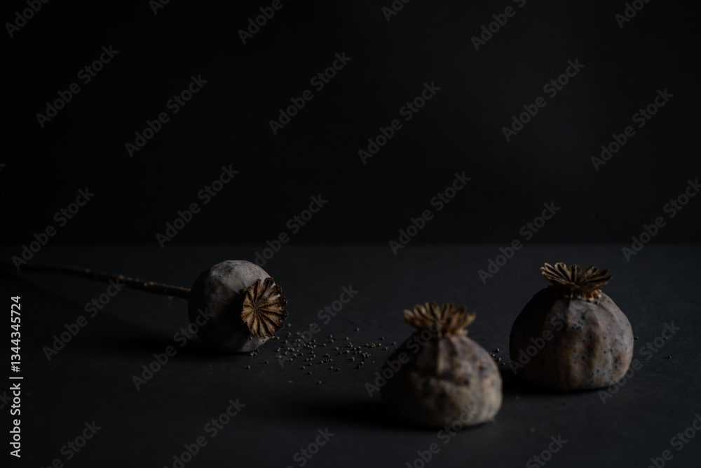Mohn af dunklen Hintergrund mit Mohnsamen