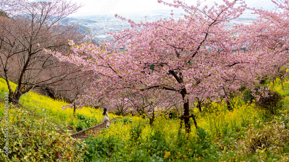 まつだの春 河津桜と菜の花のコラボ 西平畑公園 足柄上郡 神奈川県 日本