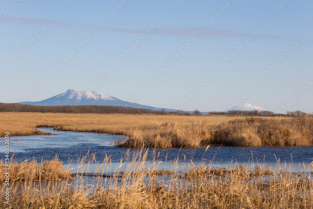 Tyatya volcano in winter, Kunashir, South Kuriles. Russia
