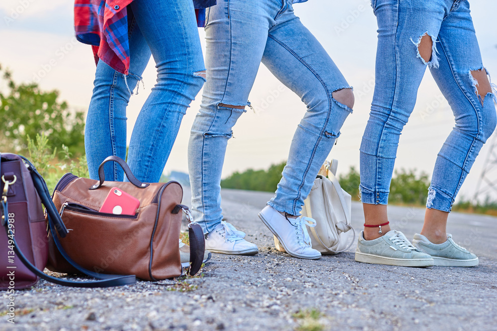 legs on asphalt road
