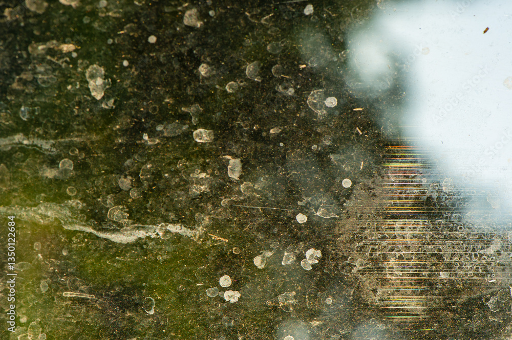 Dirty scratched surface of old glass.