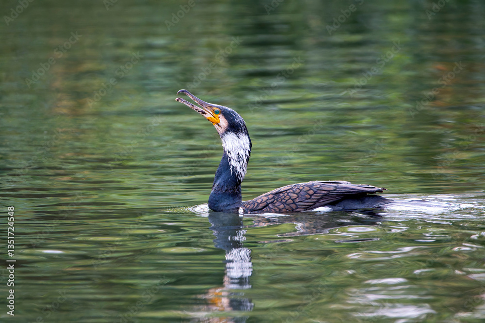 Great cormorant swimming in a lagoon.