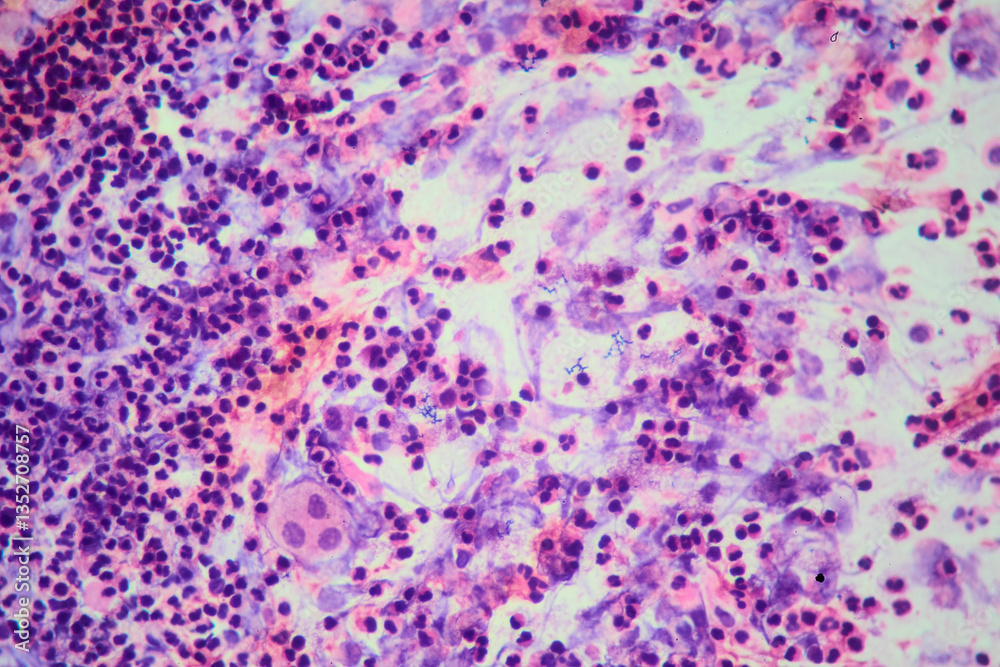 Medical themes: Bronchial lavage revealing tuberculosis granuloma and mycobacterium TB bacilos.