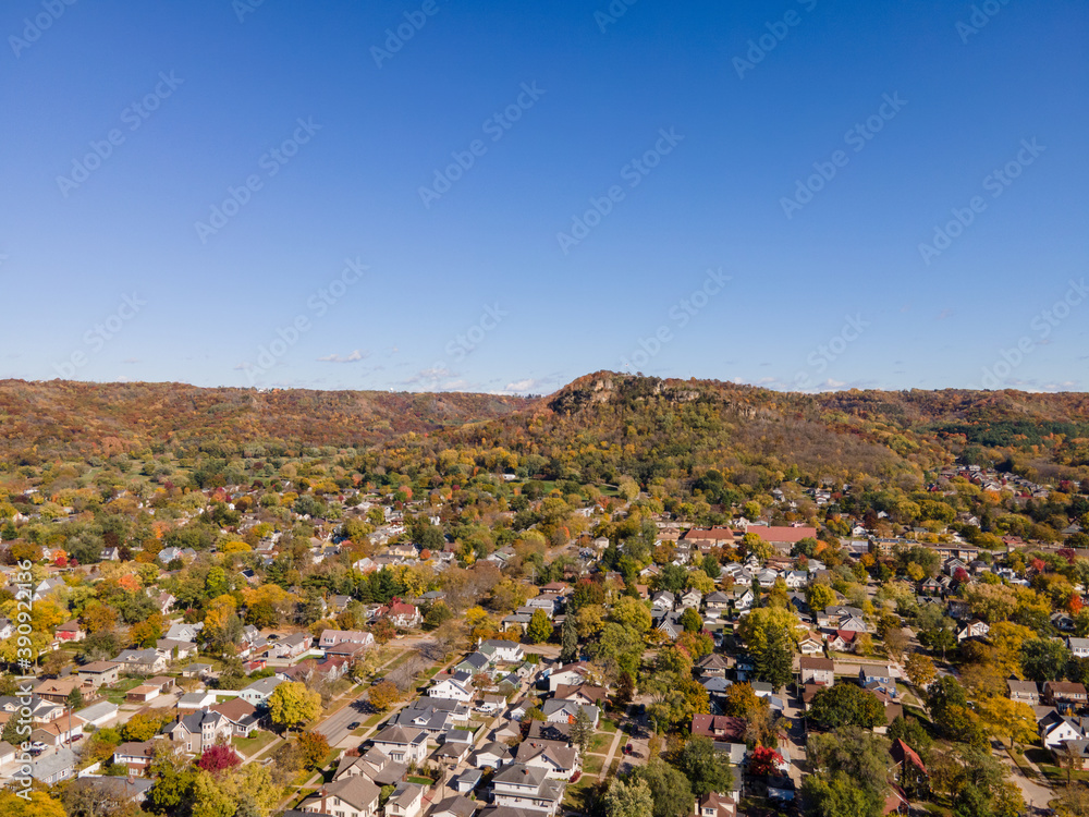 Upset baby crying in snow wearing winter clothes near wooden sled and pile of logs on cold winter day