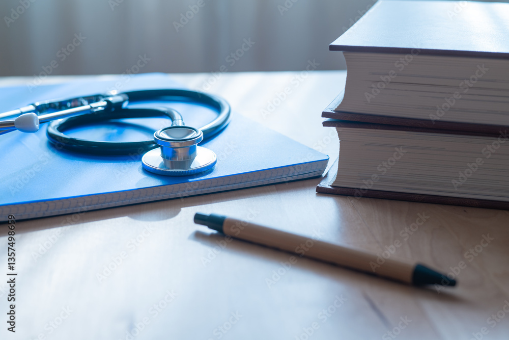 Medical Notepad And Stethoscope On Doctor’s Desk In Hospital, Emphasizing Professionalism And Patient Health Care