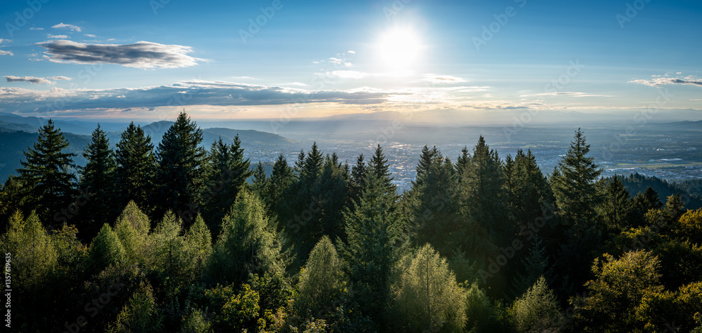 Sonnenuntergang über Freiburg im Breisgau / Südschwarzwald