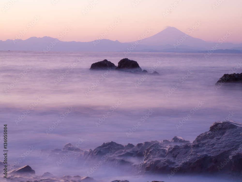 Mt. Fuji and milky haze of the sea 相模湾の夕靄と富士山