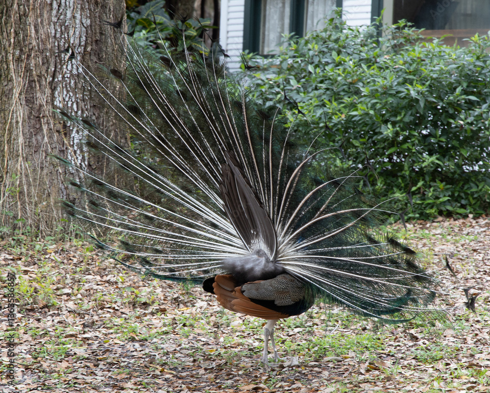 Male peacock with standard plumage on display