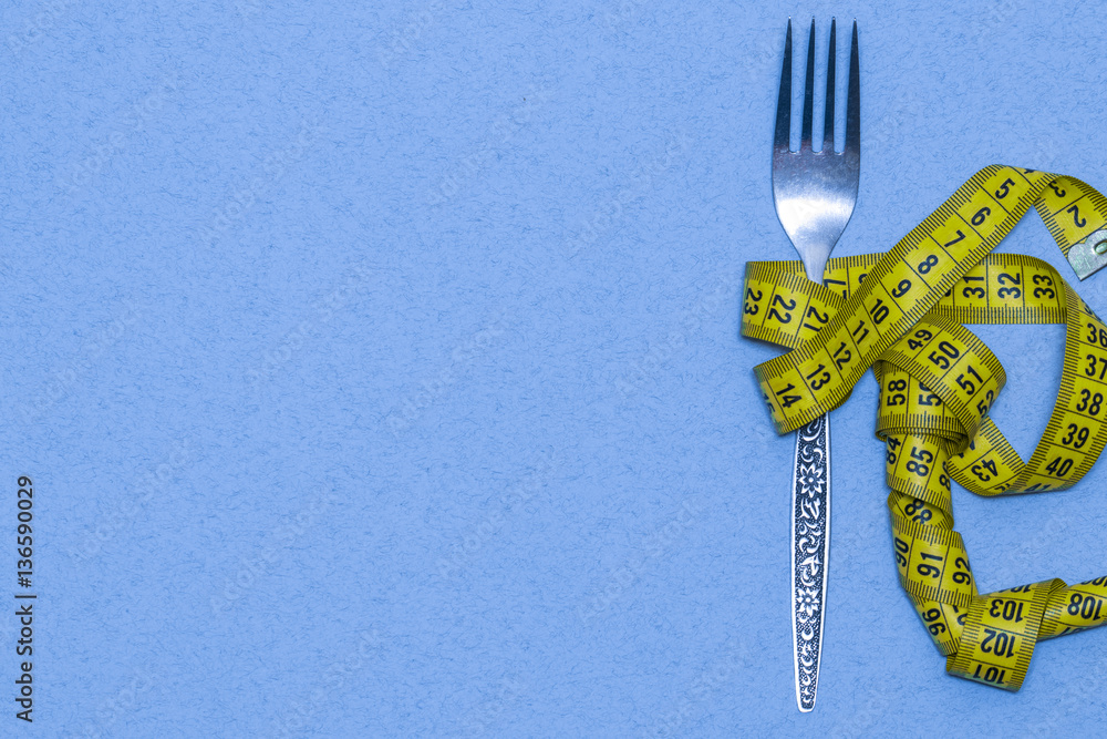 Measuring tape on a fork - dieting concept image